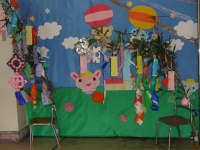 そして、各学年代表の願いごと発表と七夕飾りを作りました。
