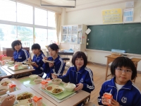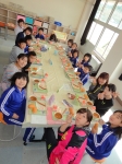 今日は3・4年生と6年生が一緒に給食を食べました。