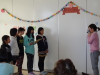校長先生や教頭先生,児童館の吉田先生にも見ていただきました。子どもたちは,ちょっぴり緊張したり照れてしまったりしていた様子でしたが,ねこや子ねずみになりきって、これまでの学習の成果を見せることができました。