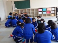 16日(月)昼休みに、今年度最後の登校班会(通学班)を行いました。