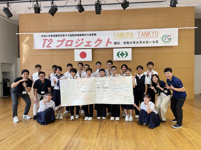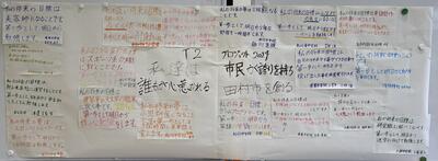 一人一枚ずつのシートを貼り合わせて、T2プロジェクトに参加した皆さんの夢がつながったデザインシートが完成しました。