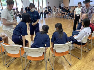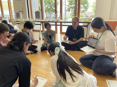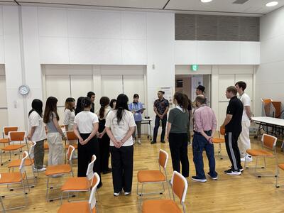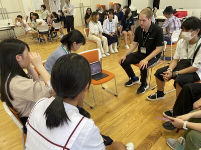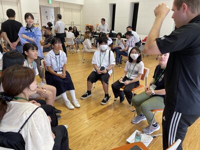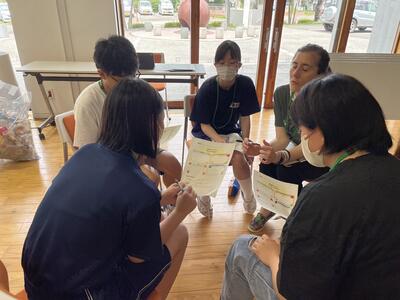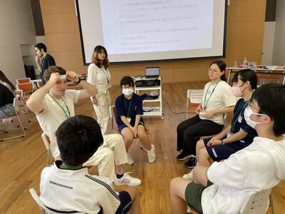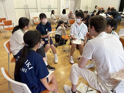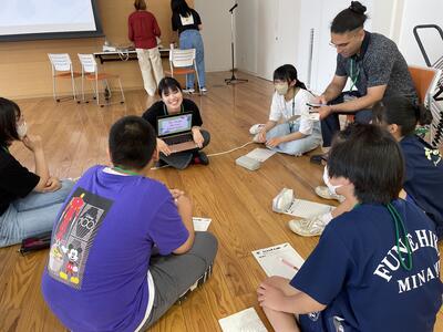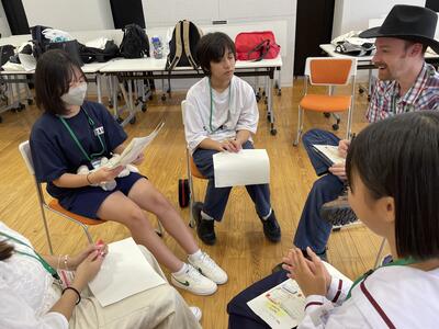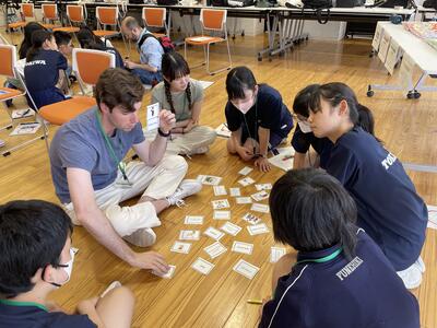 さて、今日はどんな楽しい活動が待っているのか、ALTとセカクルの皆さんが打ち合わせをしています。