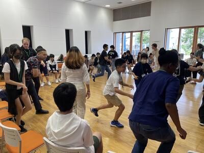 まずは、少し緊張気味の子どもたちの雰囲気を解きほぐすためのゲームです。