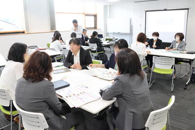会議では、講師の先生を招き、グループに分かれて、どんな子どもに育ってほしいか、そのためにどのような学びが必要か等、熱心に話し合いが行われました。