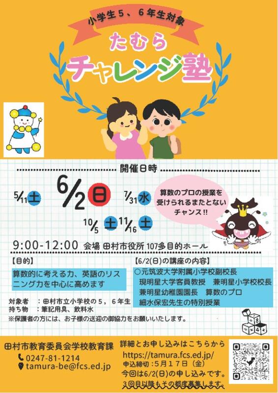 6月2日(日)午前9時より田村市役所において「第2回たむらチャレンジ塾」が行われます。