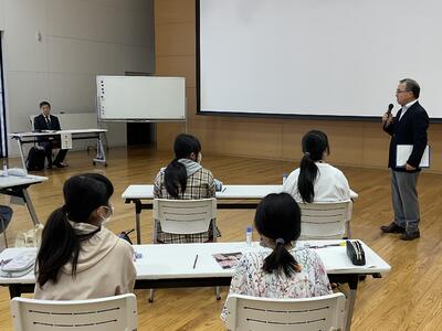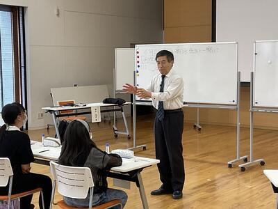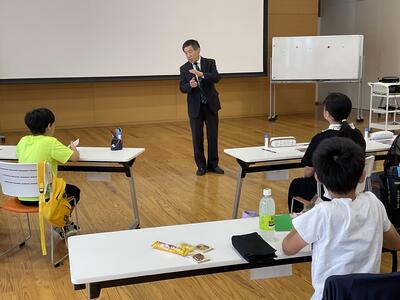 教育長より講師紹介があり、いよいよ細水先生の授業がスタートです。