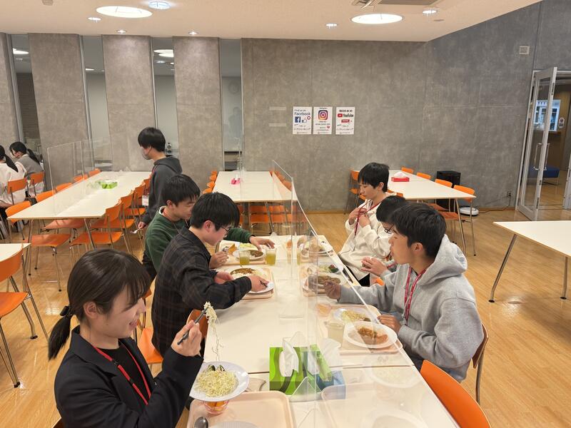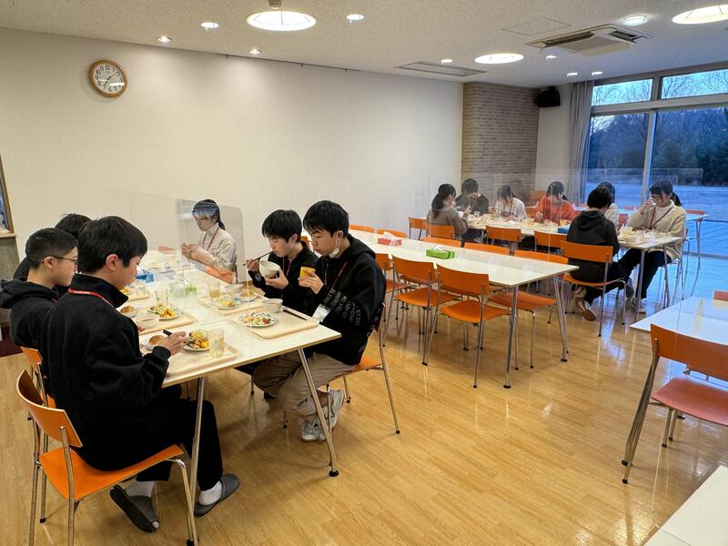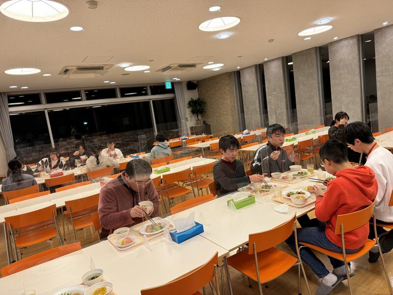 8時から18時までの濃密な研修が始まった生徒たちは、明日に向けて食事をたいらげます。