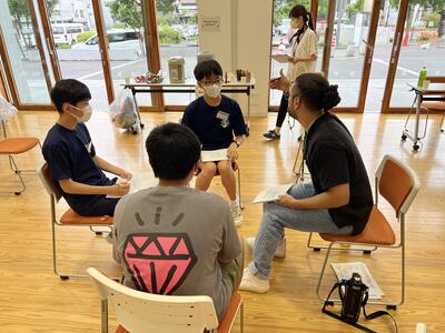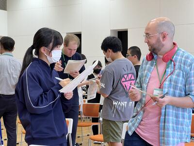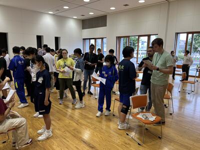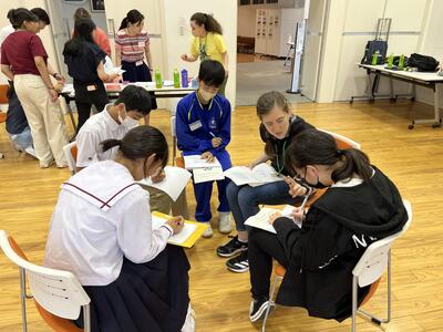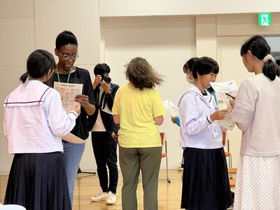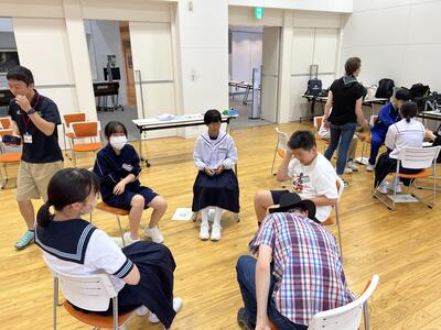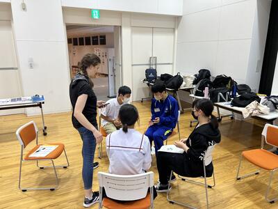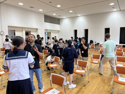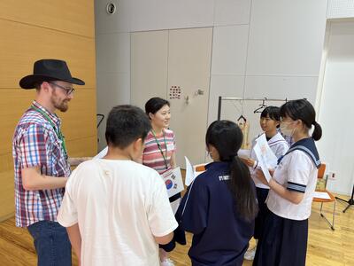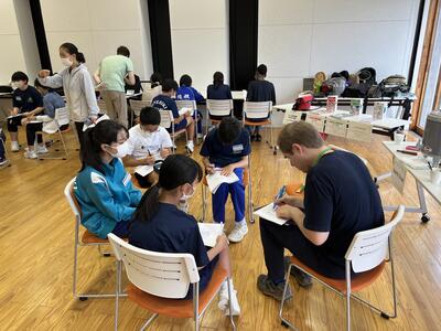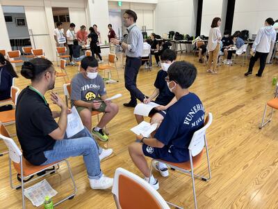 2023年7月16日 10時39分参加生徒は、休憩時間にもセカクルのメンバーやALTと交流する姿が見られます。