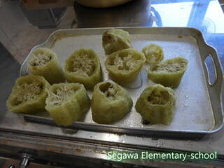 できたら、冷まして取り出します。このとき堅い繊維だけが残る・・・・・・はず。