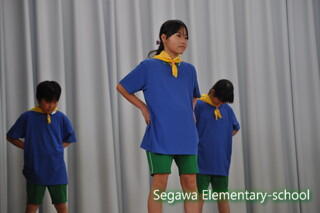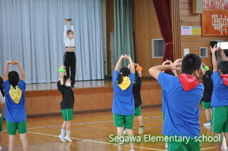 1日の学校公開のメインは、フェスティバルでご覧いただく各学年のダンスの練習風景の披露です。講師のAYAKA先生にも来ていただき、まずは準備運動