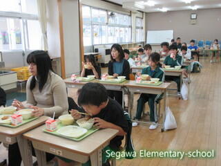 各方部ごとに部屋を割り当て、家族は近くに座るよう配慮しました。田村市給食センターの美味しい給食を楽しんでいただきました。