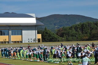 各校代表からの抱負の発表や準備運動です。このぐらい子どもがいるとにぎやかでいいですね。