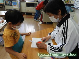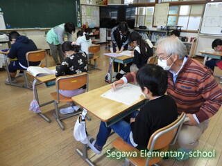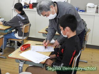 今回も田村市学校支援本部事業コーディネータの佐藤さんに取りはからっていただき、3名のボランティアの皆様が担任と一緒に「〇つけ」や助言を行いました。