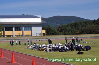 朝から、快晴の天気の中、船引北部の4小学校合同持久走記録会を開催しました。