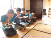 6月25日、5年生は、総合的な学習の時間で、特別非常勤講師の面川さん宅へ出かけ、茶道を体験してきました。部屋への入り方、歩き方、お茶菓子の食べ方、お茶の飲み方など、細かい点まで体験させていただきました。今後は9月以降、作法についてご指導いただき、お茶を点てるところまで学習します。