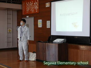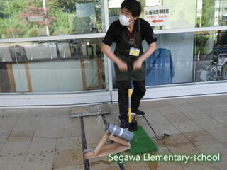 説明を聞きながら、玄関先にあったアレを思い出している子ども達です。