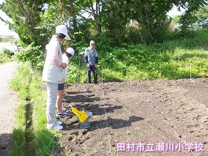 エゴマの先生に、苗をどんな風に植えるか手本を見せていただきました。