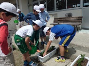 みんなで水やりをしながら、花を思いやり、仲間を思いやり、家族や地域を思いやる心を育てていきたいと思います。(文責:今年度第一号を投稿した教頭)