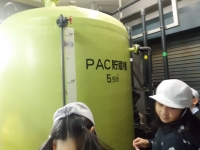 社会科の学習で、田村市水道事業所に行ってきました。大滝根川から取った水を、どのようにしてきれいにしているか、説明を聞いたり、大事な薬品が入っている「関係者以外立入禁止」の特別な部屋に入れていただいて見学させていただいたりしました。断水になっても1日分は困らないように、タンクに貯めてあることも知りました。水道事業所になぜ水槽があり、金魚がいるのかもわかりました。