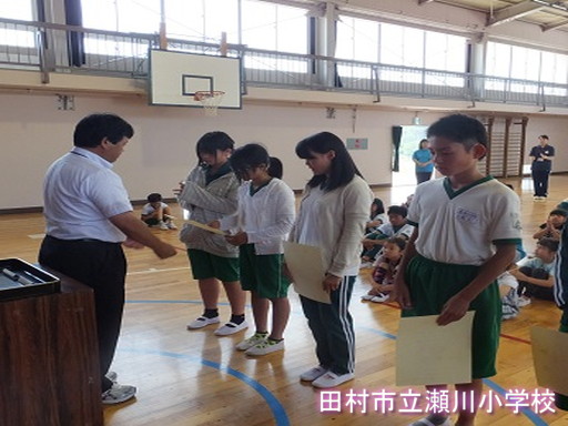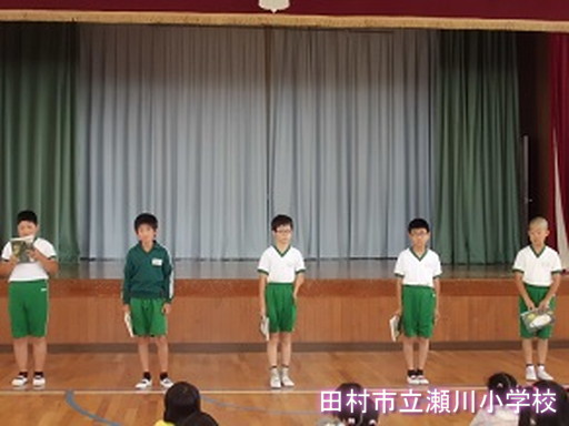 5年生の発表の前に、土曜日に行われた陸上大会と主張大会の表彰を行いました。集会のたびに表彰できるというのはとても幸せな事です。