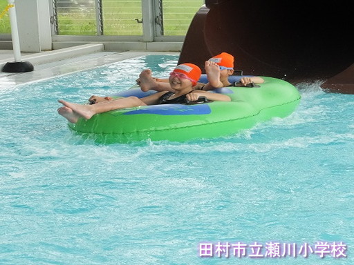 お弁当を食べた後は、フリータイム。流れるプールで遊んだり、ウォータースライダーを楽しんだり、笑顔いっぱいの活動となりました。「田村っ子の元気を支援する事業」の目的通り、子どもたちも教職員も元気になり、とっても満足な一日でした。