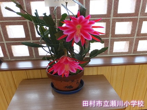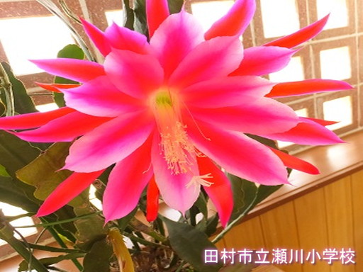 学区内に住んでいらっしゃる方が、とてもすてきな花を持ってきてくださいました。アワヒメというサボテンの花です。初めて見たとき、その見事な色合いに思わず感嘆の声が漏れました。子どもたちに是非見せたいと思い、児童昇降口に飾りました。花の咲いている間お借りしていますので、興味のある方は、是非ご来校ください。花は、そんなに長い間咲いていないそうですが・・・・。