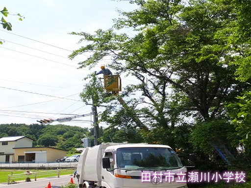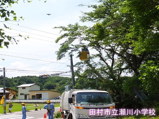 東北電力様に枝払いをしていただきました。すっきりして、信号がよく見えるようになりました。ありがとうございました。