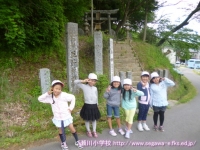 はじめに門鹿の「王子神社」をお参りしました。この神社には(本校校長の大好きな)算額が飾ってあるそうです。今回は残念ながら見ることはできませんでしたが,「王子」という名前の由来にも興味を持ったようでした。次にファミリーマートの駐車場で電気自動車の充電装置を見てから,船引駅に行きました。特に駅構内の「お人形様」を興味深く見てきました。また,田村市の特産品の展示物で,自分たちが学習を始めた「エゴマ」と関連のある商品が並んでいてますます関心が深まったようでした。その後,文化センターで消防関係の行事の準備をしている様子を見学したり,船引児童館や公園で思いっきり遊んだりして,盛りだくさんの内容の見学学習となりました。