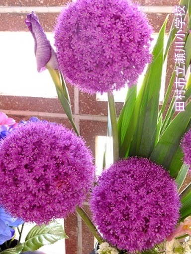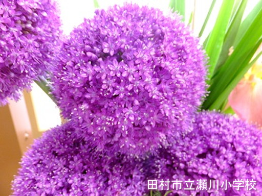 今朝、職員がアリウム・ギガンチュームを持ってきて、児童玄関と校長室に飾ってくださいました。とても美しい花だと思い、思わずシャッターを押しました。ようく見てみると、小さな花がたくさん集まって、1つの美しい形を作っていることが分かります。