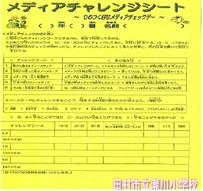 明日、6月10日は、瀬川小学校第1回目のノーメディアチャレンジデーです。ノーメディアチャレンジは、船引中学校区の小中学校全体で取り組んで行こうというものです。本校に先行して、既にいくつかの小中学校で実践が進められています。この取り組みの背景には、子ども達がかなり多くの時間をテレビやゲーム、パソコン、スマホなどに費やしているという実態があります。「友達からのメール等には、すぐに返信しなければならない。」と言うことで、夜遅くまでメール等のやりとりをしていて翌日朝食も食べられず、学校の授業にも身が入らないといったケースもあるようです。間違ったマナー、勘違いの友達関係、メディア中心の生活にさよならして、メディアと上手につきあいながら、今、自分たちがすべき事をしっかり行い、やがて自立するための力をしっかりつけて行かなければなりません。チャレンジカードには、5つのチャレンジコースが設定してあります。