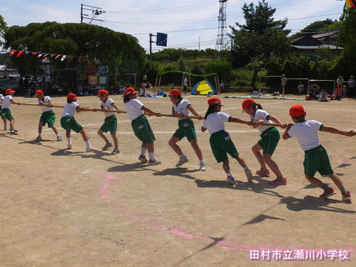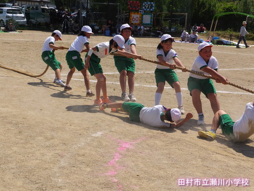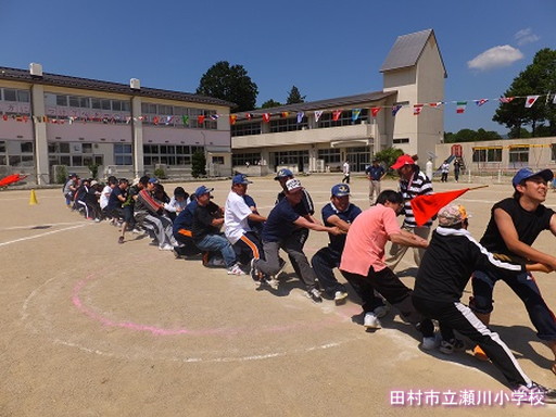 地区の紅白対抗も盛り上がりました。リレーや綱引き、PTAは、「横綱引き」という新しい種目にも挑戦しました。子どもたちは、大人の迫力ある種目を見て、改めて大人の力強さや速さに驚きを感じていました。第1回目の今年は、紅、白引き分けとなり決着は、来年に持ち越しと成りました。