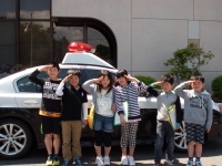 4年生の社会の授業で、警察の仕事について学習しています。5月13日は田村警察署に行き、福島県の警察官の人数や事務の仕事をしている人の人数を聞いたり、どんな係があるのかや、110番通報したらどこにつながるのかなどを、警察署員の方から聞いたり、DVDを見せていただいたりし、具体的な話を聞くことができました。また署内の見学をしたりパトカーに乗車させていただいたり貴重な体験もしました。
