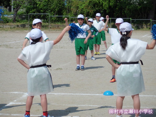 今日は、外で初めての応援合戦。応援合戦のポイントは、恥ずかしがらずに、思いっきりやること。暑い中でしたが、子どもたちはがんばっていました。勝利をつかむためには、「気合い」が一番です。
