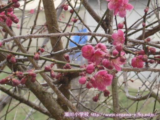 体育館へ行く途中の紅梅がとても美しいので思わず、シャッターを押してしまいました。瀬川小学校の校庭には、見事なしだれ桜も咲きます。今週末が見頃かなと思います。