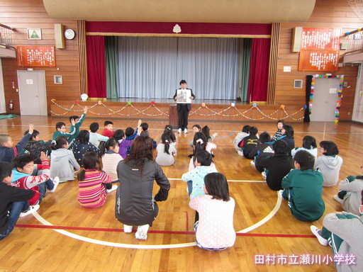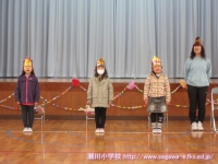 4月14日(火) 今日は、1年生を迎える会を行いました。6年生のお姉さんと一緒に入場。少し緊張していた一年生。児童会の司会で会が進み、〇Xゲームを行ったり、歌を歌ったり、プレゼント渡しがあったりと楽しく取り組みました。最後に全員で写真撮影をしました。