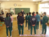 3月5日(木)5・6年生で組織されている少年消防クラブを小学校卒業のため退会するにあたり、田村消防署から2名の来賓にお越しいただきました。署長さんより代表児童が期待書の交付を受けたあと、「今後も積極的に家庭や地域の防火・防災の担い手になるようにしてください」と、励ましの言葉をいただきました。