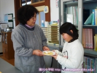 3月5日(木)2年生が一人一人「ホットケーキを調理したので、よろしかったら食べてみてください。」と、小学生とは思えないすばらしい言葉と入室態度で職員室へ持って来てくれました。ホイップクリームと蜂蜜がかかって、それに温かい気持ちがエッセンスとなり、とっても美味しかったです。ごちそうさまでした。