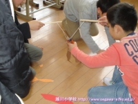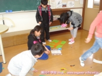 3年生はこの1年間に学習したことを使って、工夫しておもちゃを作る学習をしました。風やゴム、電気や磁石、物の重さについて振り返ってヒントにします。磁石を使った魚釣りゲームや正しい答えでつなぐと豆電球が点くゲーム、動く円盤などを作りました。できあがってから、子ども達は各コーナーを回って友達の説明を聞き、楽しくゲームで遊びました。