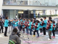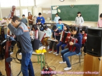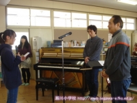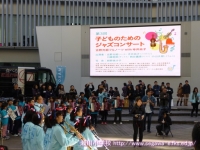 実は本校児童の一部は古野さんと司会の持田さんと以前にお会いしています。それは、平成24年11月、子どものためのジャズコンサート(於:六本木ヒルズアリーナ)です。福島県から本校の合奏部が招かれ「情熱大陸」を演奏し、その時にジャズベーシスト 古野光昭さん、ジャズヴァイオリニスト 寺井尚子さんと夢の共演を果たしたのです。そろいのTシャツやCDにサインをしてくださるなど、とても親切に接していただきました。「2年前に六本木ヒルズでセッションしましたね。今度は古野さん達が瀬川小学校に来てくださって、ありがとうございました。ジャズを楽しんでみんなで一緒に演奏できたことがとても嬉しいです。」と合奏部部長が感謝の言葉を伝えました。