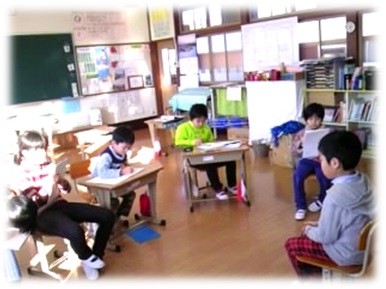 本校では、授業開始前に、様々な活動を行っています。国語や算数の練習問題に取り組んだり、読書を行ったり、そして、金曜日は、学級の時間です。どんな活動をしているのか、教室を訪問してみると・・・・・1年生は、友達をモデルにして真剣にスケッチに取り組んでいました。そういえば、以前、このブログで、1年生が描いた友達の顔の絵を紹介しました(2014,11,20)。1年生が、とても良い絵を描くのは、こんな朝の活動に秘密があったことが分かりました。