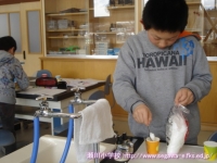 体積が同じ砂糖と塩の重さを調べる実験をしました。小さな紙コップに山盛りになるまで入れて隙間が無くなるよう「トントン」3回、何度か繰り返した後、割り箸ですり切って体積を同じにしました。簡単そうですが難しく、慎重にやらないと正確な数値はでません。次の時間に実験したことのまとめの学習をします。