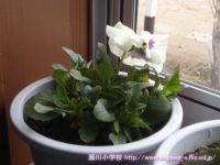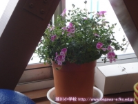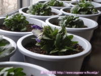 2月とは思えない陽気が続いています。理科室に置いて5年生が世話をしている鉢花(パンジー)が咲き始めました。職員室にある桃も蕾が膨らんできています。