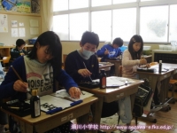 2015年1月27日 17時30分 社会と理科の学習で、見学学習に行ってきました。社会では、古い道具を見学するため、三春町歴史民俗資料館に行ってきました。子ども達は、「今は便利でいいな」「水を飲むにも一苦労していたんだね」「昔もたばこってあったんだ」など、いろいろな感想が聞けました。準備していただいた履き物はわら草履でしたが、そのわらを布で覆っていて、一足一足違った、味わいのある草履を履かせていただきました。理科では、郡山市ふれあい科学館へ行き、「星座を見つけよう」のプラネタリウムを見てきました。星座はまだ学習していませんが、3・4年生向けの丁寧な解説があり、わかりやすかったです。子ども達は「ぼくの星座はあるかな…」「木星の輪って、水の粒や氷の粒なんだ」などと感想を話していました。