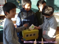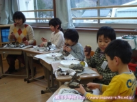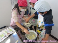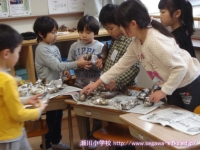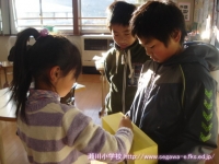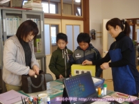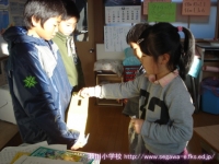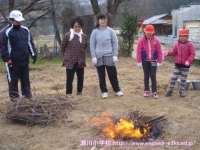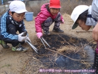 11日の生活の時間に,以前に収穫したサツマイモで焼き芋を作って食べました。食品放射能測定でも「検出限界値以下」で安全が確認されており,濡れた新聞紙とアルミホイルでつつんで,保護者の方や多くの先生方に薪を燃やしておきを作ってもらったところに入れて,わらと焼きぬかをかぶせて,15分ぐらい待ちました。1年生は初めて火が燃えているところを目の当たりにし,暖かさや熱さ,煙たさなどを実感していました。炭の中から出てきたサツマイモは柔らかく,思わずその場で試食してしまいました。焼きあがったサツマイモは教室へ運び,お手伝いをしてくださった保護者の方といっしょに,たくさんの人たちのおかげで作れたことに感謝して,おいしくいただきました。