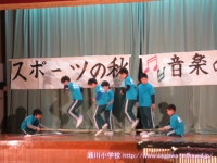 写真は、オープニング「キッズソーラン」1年、特設合奏部の発表、第1部「スポーツの秋,芸術の秋」3・4年、「ねずみのすもう」1年 の様子です。子ども達は大きな拍手をいただいて大満足でした。