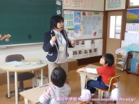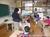 10月23日(木)3校時に,学級活動の時間で食べ物のことについて学習しました。講師の先生として,給食センターの佐久間先生にお出でいただき,今日の給食に入っている食材とその働きを教えていただきました。すると,身体の調子を整えるための「緑」の食材がたくさん含まれていることに気づきました。そして,苦手な食べ物も「緑」のものが多いことも分かりました。苦手な食べ物を残さず食べるために,「好きなものと一緒に食べる。」「きらいなものをくちい入れた後よく噛み,牛乳かスープと一緒に食べる。」などの工夫を考え,早速お昼の給食から実践することができ,全員が残さず食べました。
