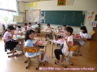 9月11日(木)は,4・5年生が宿泊学習のため,お弁当の日でした。2年生と3年生12名は,2年生教室で一緒にお弁当を食べました。おうちの方が作ってくださったおいしいお弁当を,全員残さずいただきました。ごちそうさまでした。その後の歯磨きも一緒に行い,きれいな歯にすることができました。