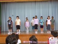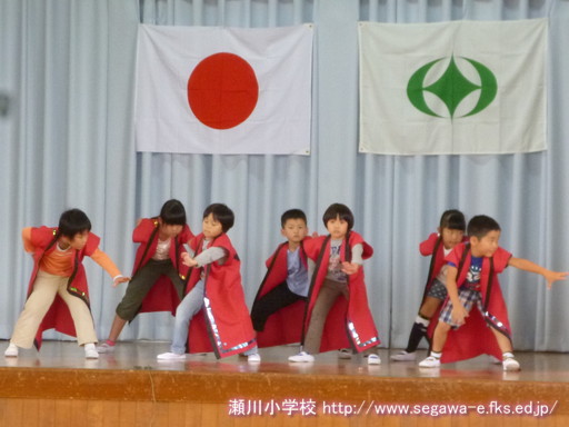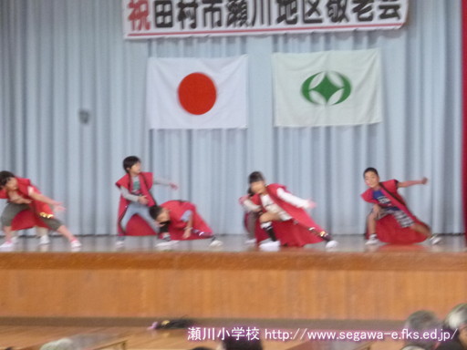 9月15日(月)瀬川地区敬老会に1年生7名が参加し,踊り「キッズ ソーラン」を発表しました。練習どおり元気に踊ったり,掛け声をかけたりすることができました。