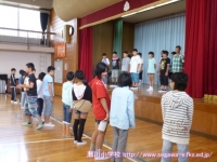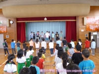9月17日(水)に田村市小学校陸上競技大会が田村市陸上競技場で開催されます。今日の全校集会は陸上大会に参加する6年生の壮行会を行いました。