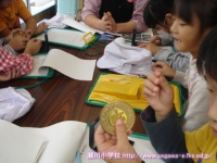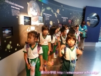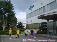 次は、藤倉航装へうかがいました。パラシュートや救命装備用具を製造する日本で唯一の会社だそうです。徳吉課長さんから映像資料で説明していただいた後、工程ごとのフロアを見学して回りました。パラシュートが何種類もあり、目的に応じて大きさや色・素材も様々で、児童は興味津々の様子でした。また、ハヤブサのカプセルについていたパラシュートも作ったというお話に、身近な会社が宇宙探求へ繋がっていることにも気づいてくれたと思います。